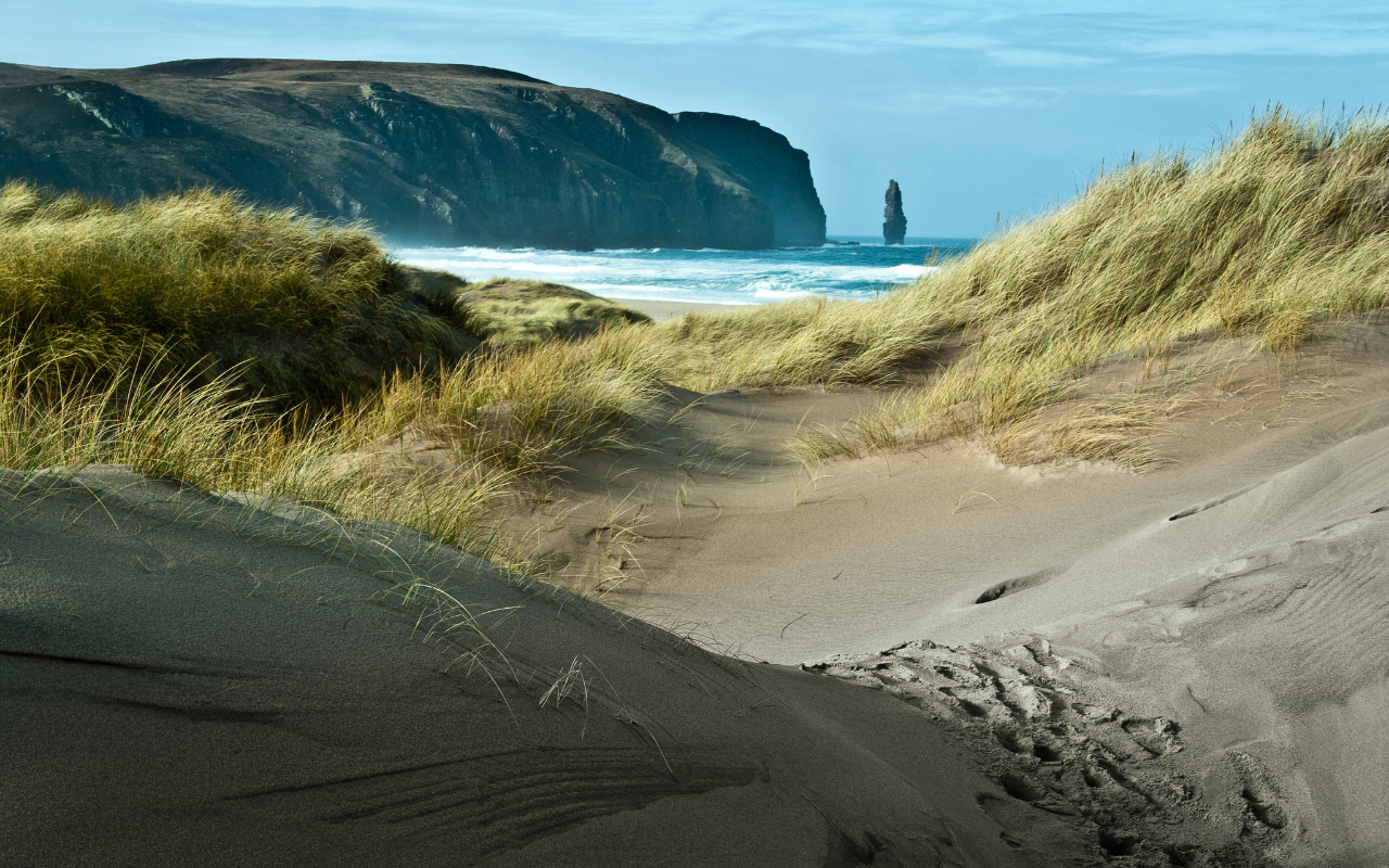 Looking for an adventure? Venture to Scotland’s remote north-west, Sandwood Bay in Sutherland for a true wilderness experience. Accessible only by a four-mile walk from the nearest road, this beach is renowned for its pink sand, towering dunes, and the solitary sea stack of Am Buachaille. It’s a pristine, untouched landscape perfect for solitude and reflection.
